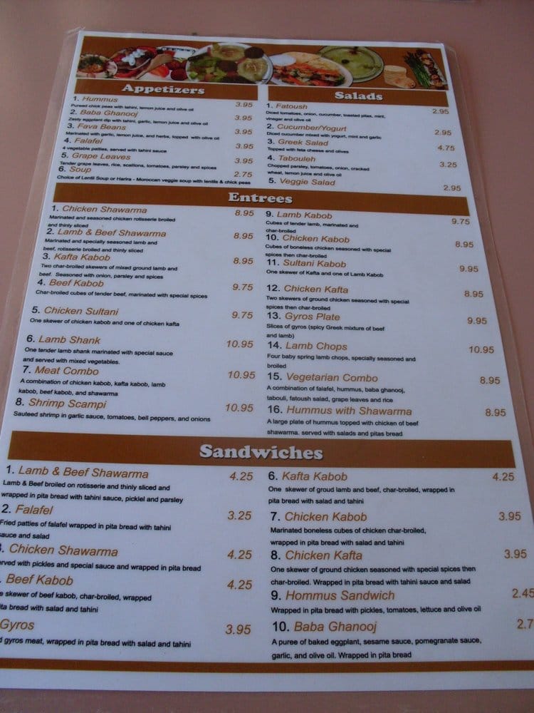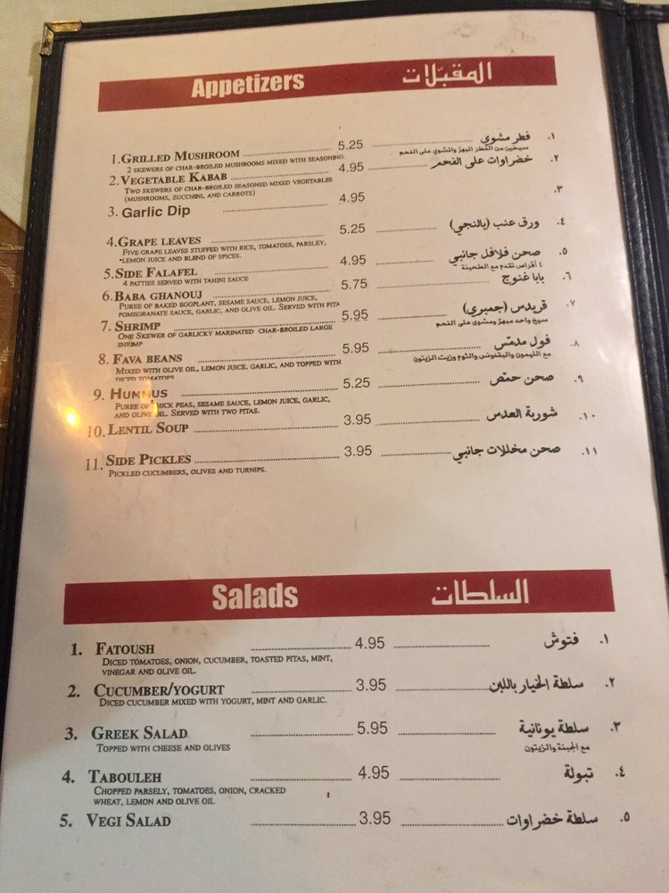 - Appetizers: Start your culinary journey with classics like Baba Ghanoush or a delightful Hummus, both expertly crafted and served with freshly baked pita.